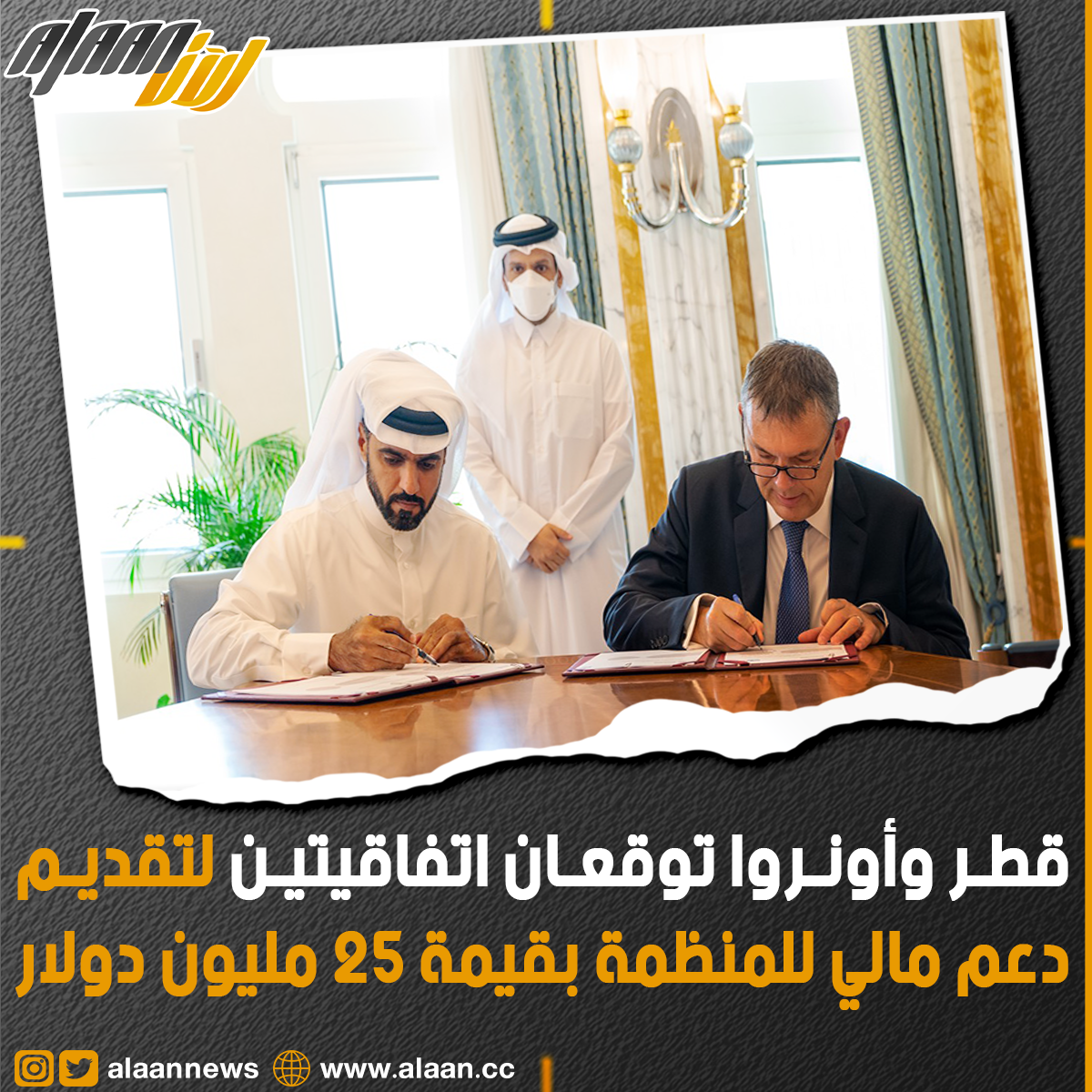 قطر وأونروا توقعان اتفاقيتين لتقديم دعم مالي للمنظمة بقيمة 25 مليون دولار