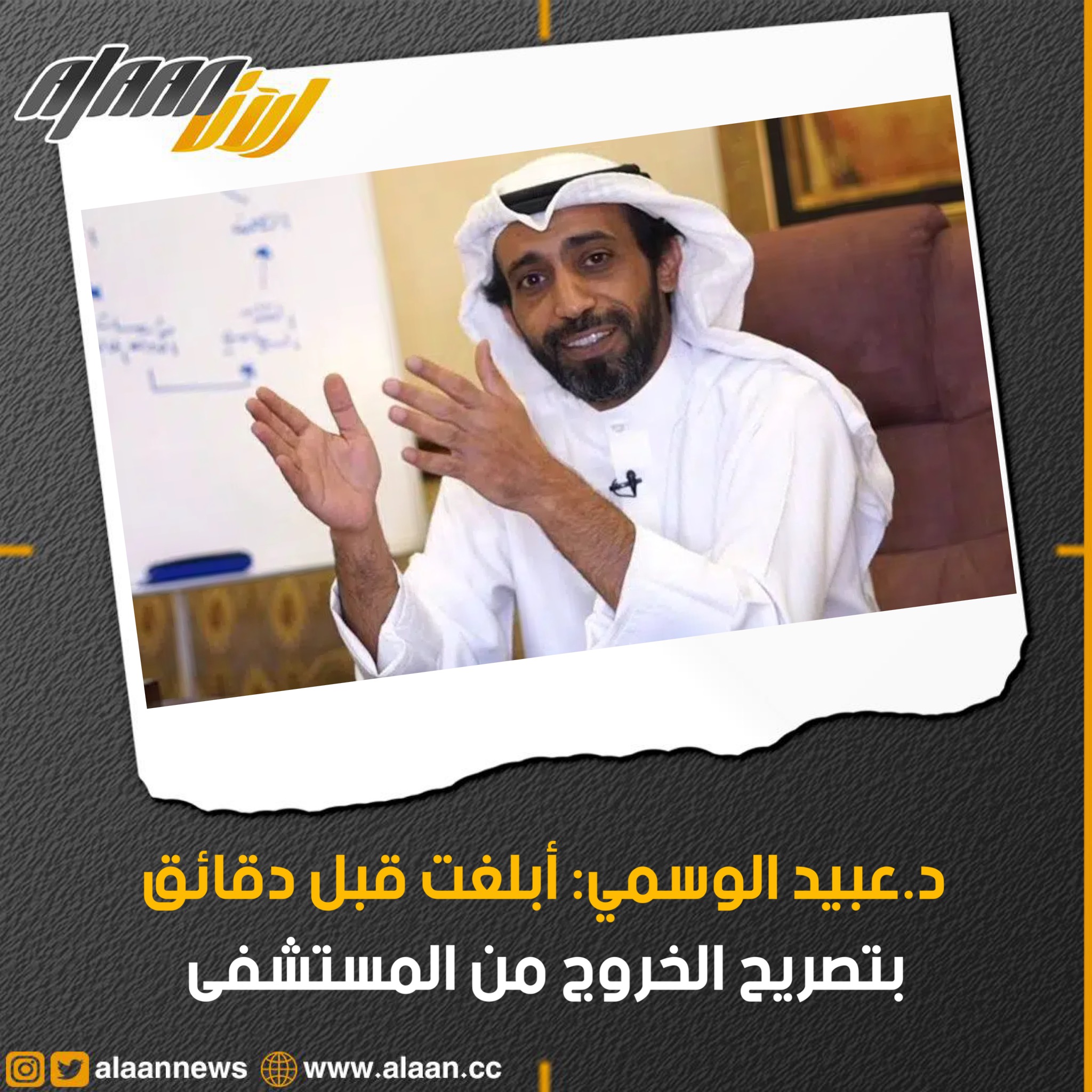 د.عبيد الوسمي: أبلغت قبل دقائق بتصريح الخروج من المستشفى