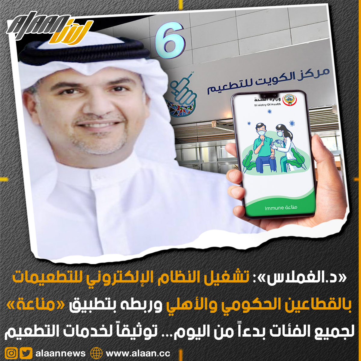 وقال مدير إدارة الصحة العامة الدكتور فهد الغملاس لوكالة الأنباء الكويتية (كونا) انه تم تطوير خدمات التطعيم بالنظام الرقمي الالكتروني مع ربطه بتطبيق (مناعة) على الأجهزة الذكية وذلك لتسجيل وتوثيق خدمات التطعيمات التي ستقدم اعتبارا من اليوم لجميع الفئات.