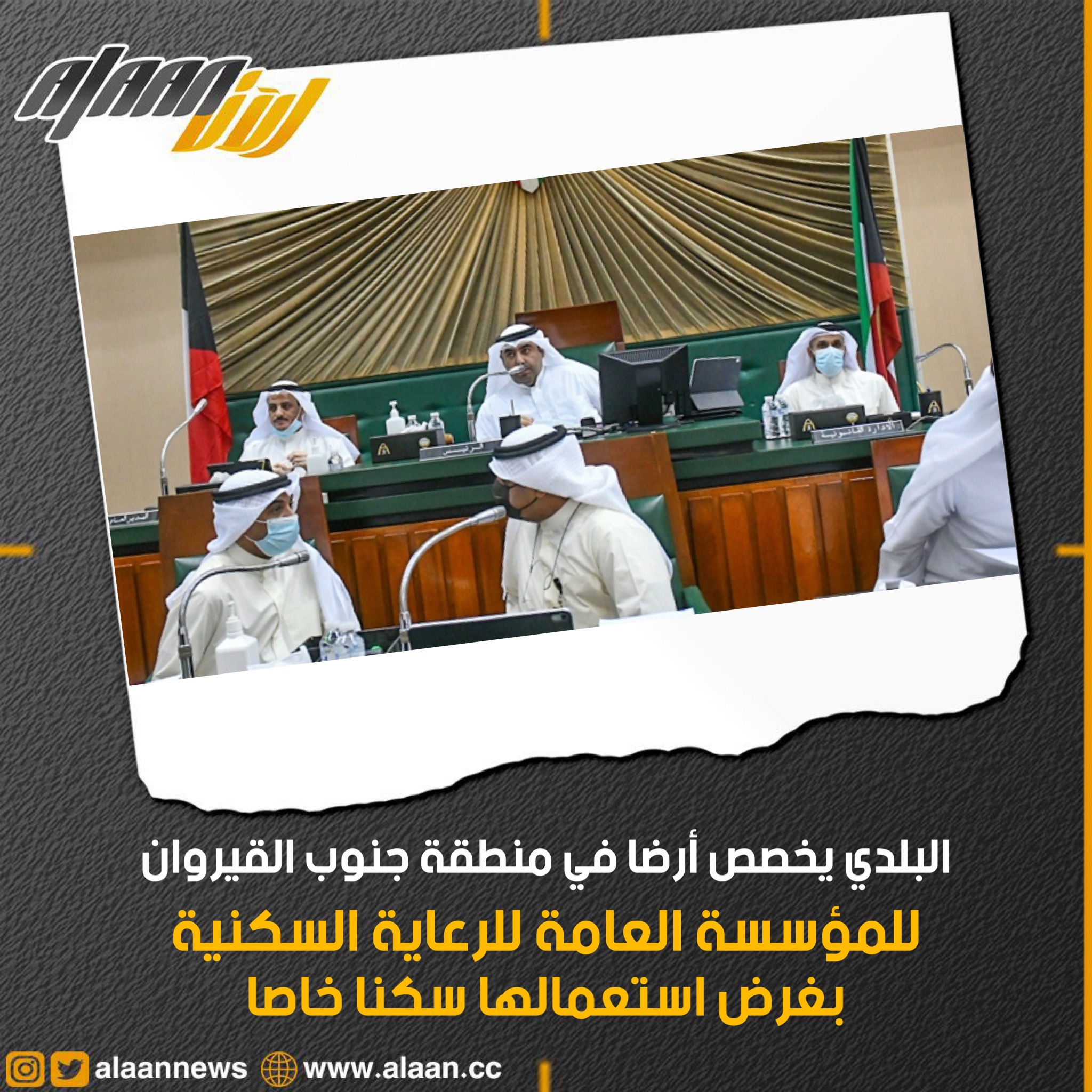 وافق المجلس البلدي اليوم الاثنين في جلسته التي عقدت برئاسة أسامة العتيبي على تخصيص أرض في منطقة جنوب القيروان للمؤسسة العامة للرعاية السكنية بغرض استعمالها سكنا خاصا.