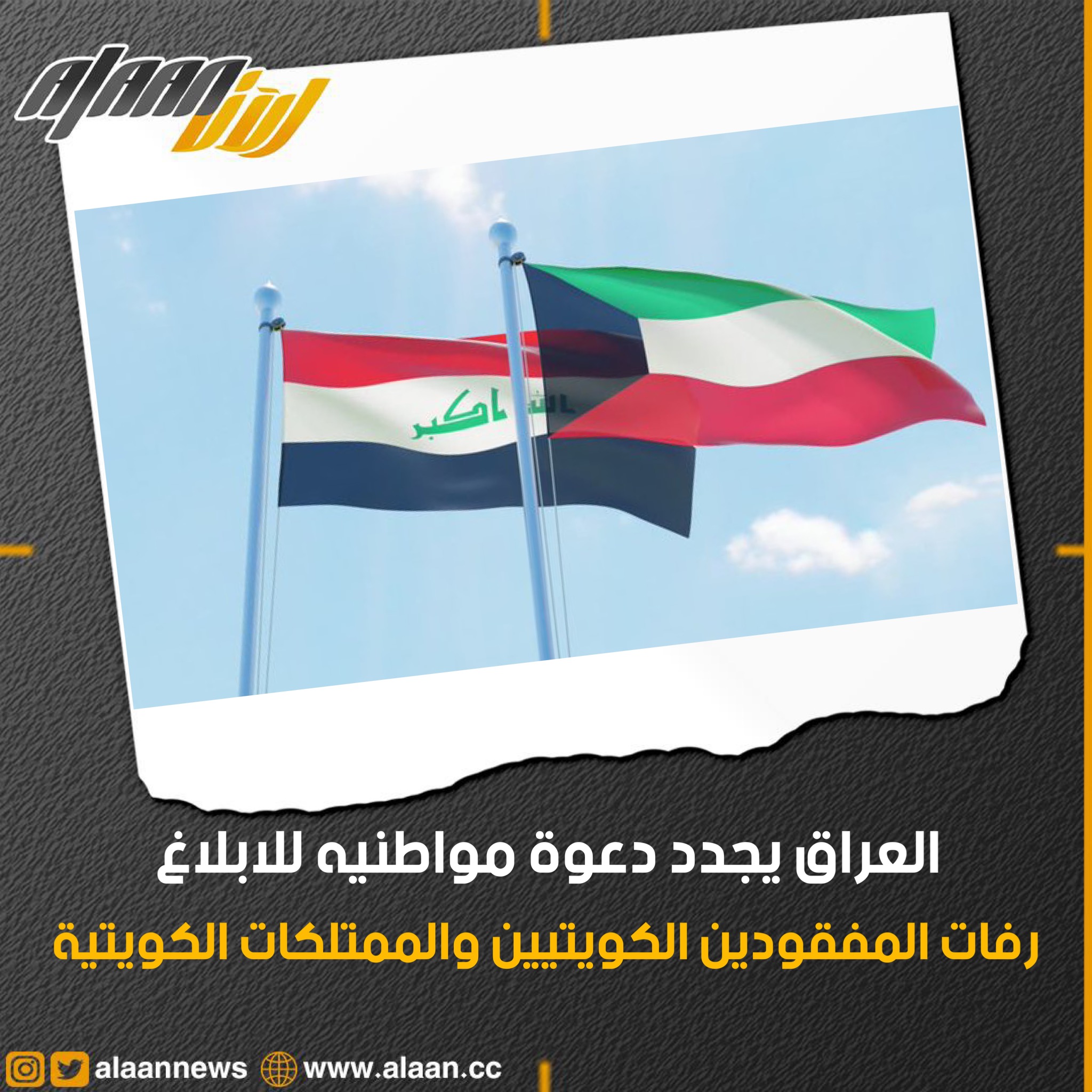 جددت وزارتا الخارجية والدفاع العراقيتان دعوة المواطنين العراقيين كافة إلى الابلاغ عن اي معلومات عن رفات المفقودين الكويتيين والممتلكات الكويتية.