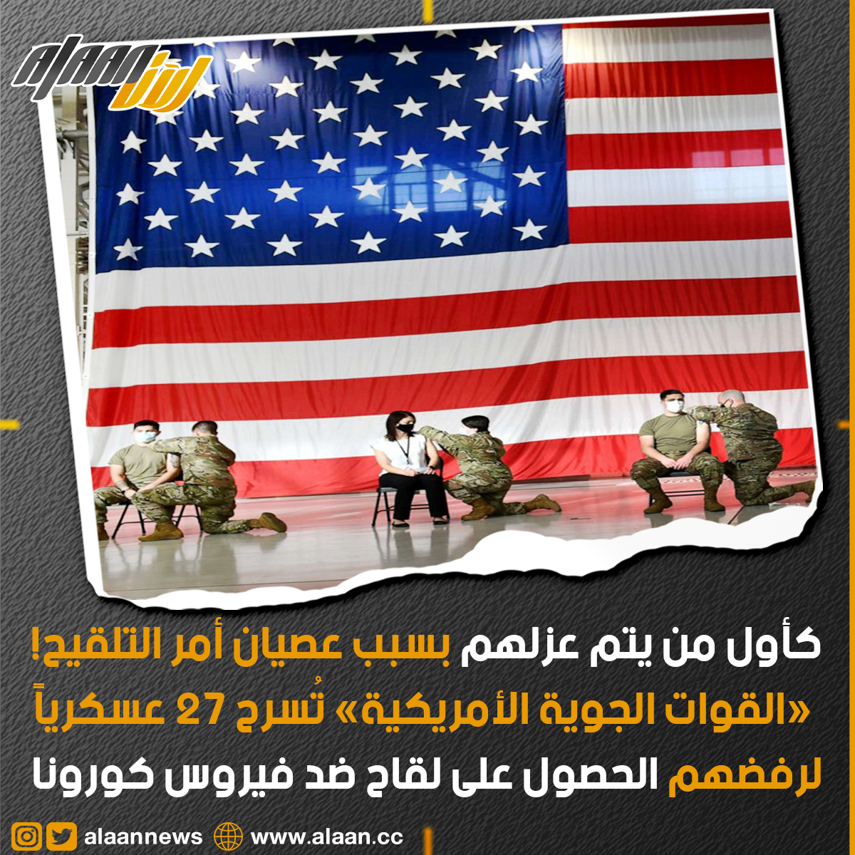 بسبب رفضهم تلقي لقاح ضد #كورونا... القوات الجوية الأمريكية تطرد 27 عسكرياً
