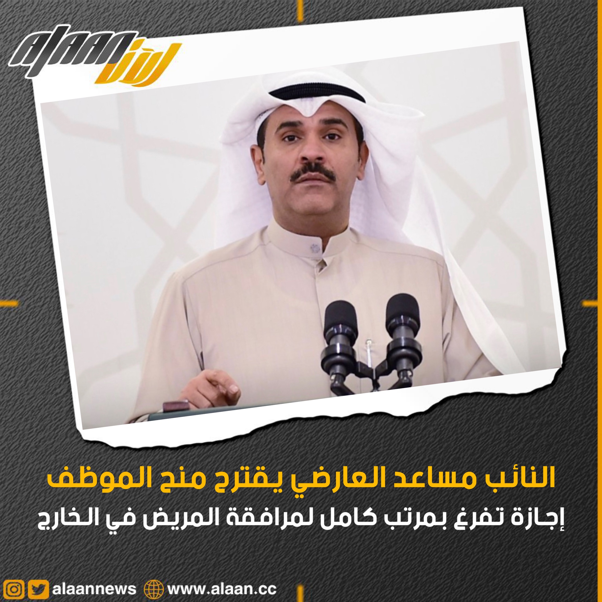 تقدم النائب مساعد العارضي باقتراح برغبة، بمنح الموظف إجازة تفرغ بمرتب كامل لمرافقة مريض في الخارج، قال في مقدمته ما يلي: