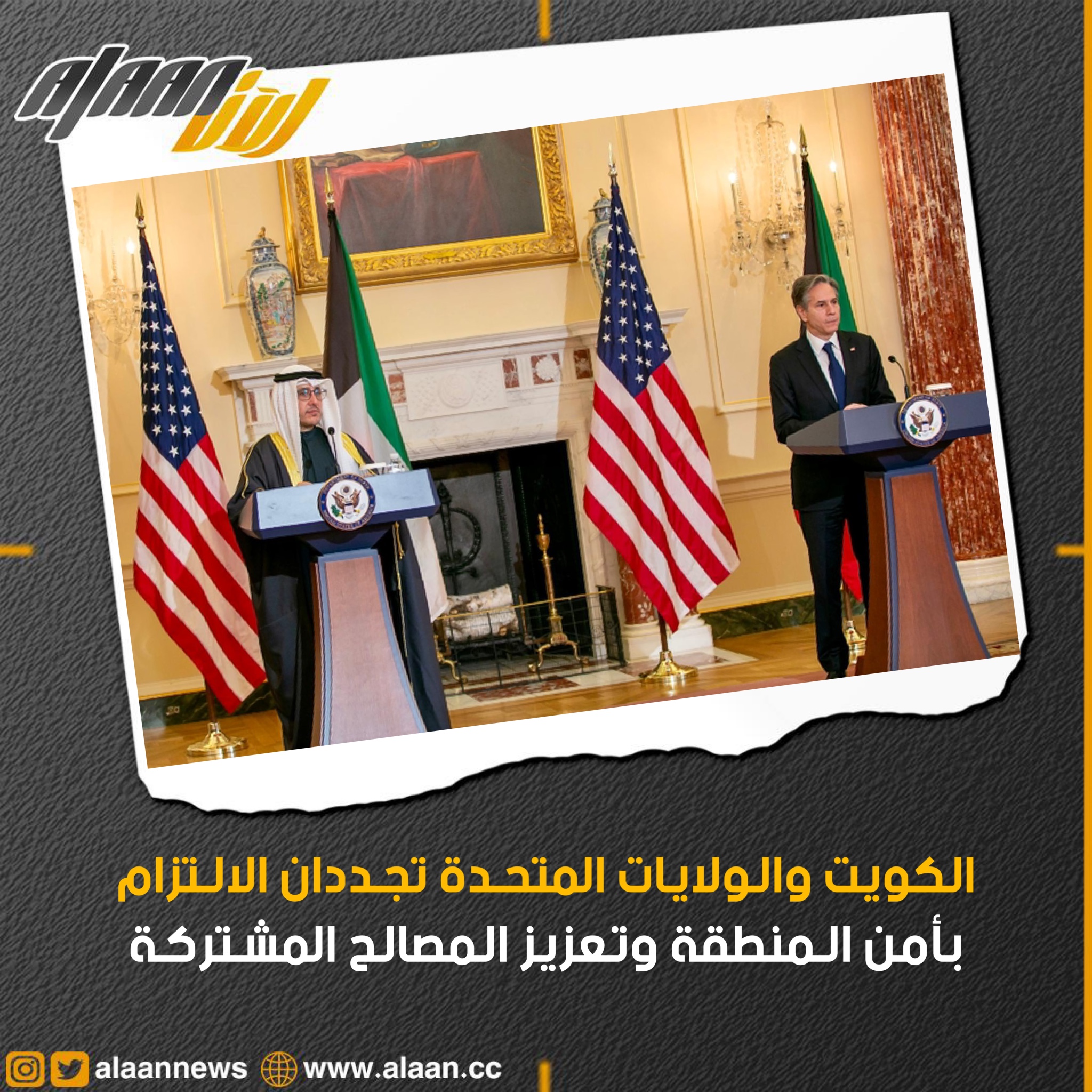 جاء ذلك في البيان المشترك الصادر عن الجولة الخامسة من الحوار الاستراتيجي بين الولايات المتحدة ودولة الكويت الذي افتتحه وزير الخارجية الأمريكي أنتوني بلينكن ووزير الخارجية ووزير الدولة لشؤون مجلس الوزراء الشيخ الدكتور أحمد ناصر المحمد الصباح في 26 يناير 2022 في العاصمة واشنطن.