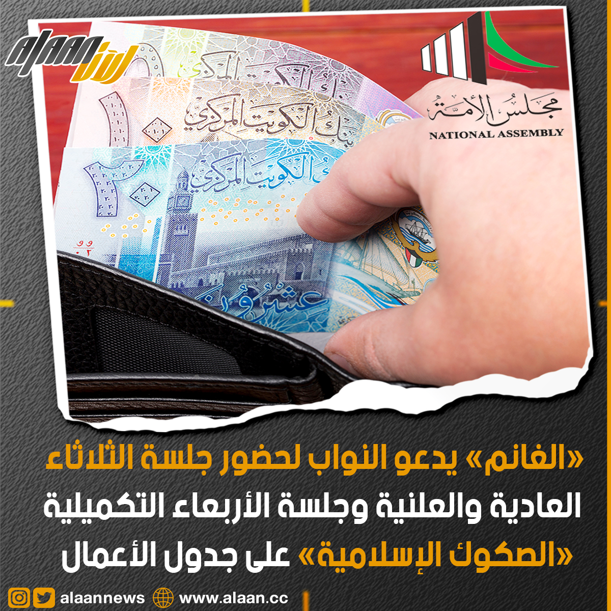 وجه رئيس مجلس الأمة مرزوق الغانم الدعوة للنواب لحضور جلسة الثلاثاء العادية والعلنية، وجلسة الأربعاء التكميلية.