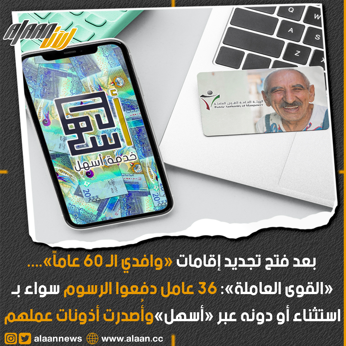 أعلنت الهيئة العامة للقوى العاملة أنه بشأن القرار الإداري رقم ( 27 ) لسنة 2021 في شأن إصدار لائحة قواعد وإجراءات منح الإذن بالعمل ، فقد تم اعتماد عدد ( 36 ) عامل قاموا بدفع الرسوم سواء باستثناء أو دونه عبر تطبيق أسهل ، وذلك بعد فتح الباب لإصدار أذونات العمل لمن بلغ عمر الستين عاما فما فوق من حملة شهادة الثانوية العامة فما دون وما يعادلها من شهادات بتاريخ 2022/1/24 .