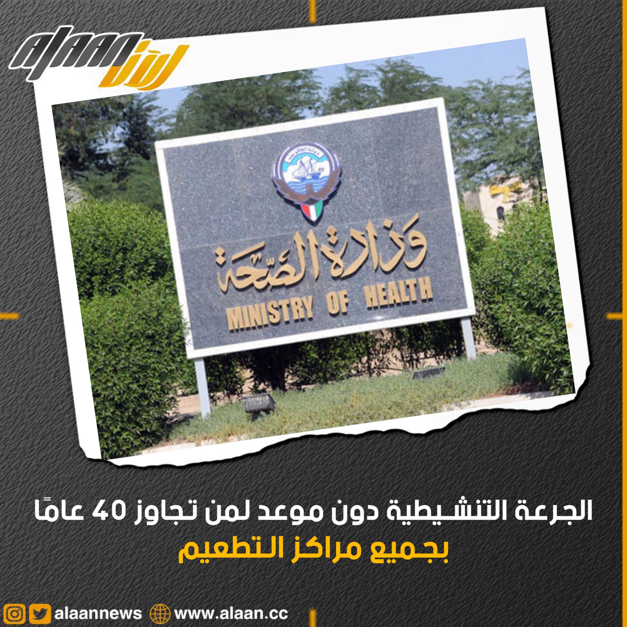 تستقبل وزارة الصحة يوم غد الأربعاء من بلغ 40 عاماً فما فوق بجميع مراكز التطعيم لتلقي الجرعة التنشيطية «الثالثة» وذلك لتسريع عملية التطعيم المضاد لفيروس كورونا المستجد.