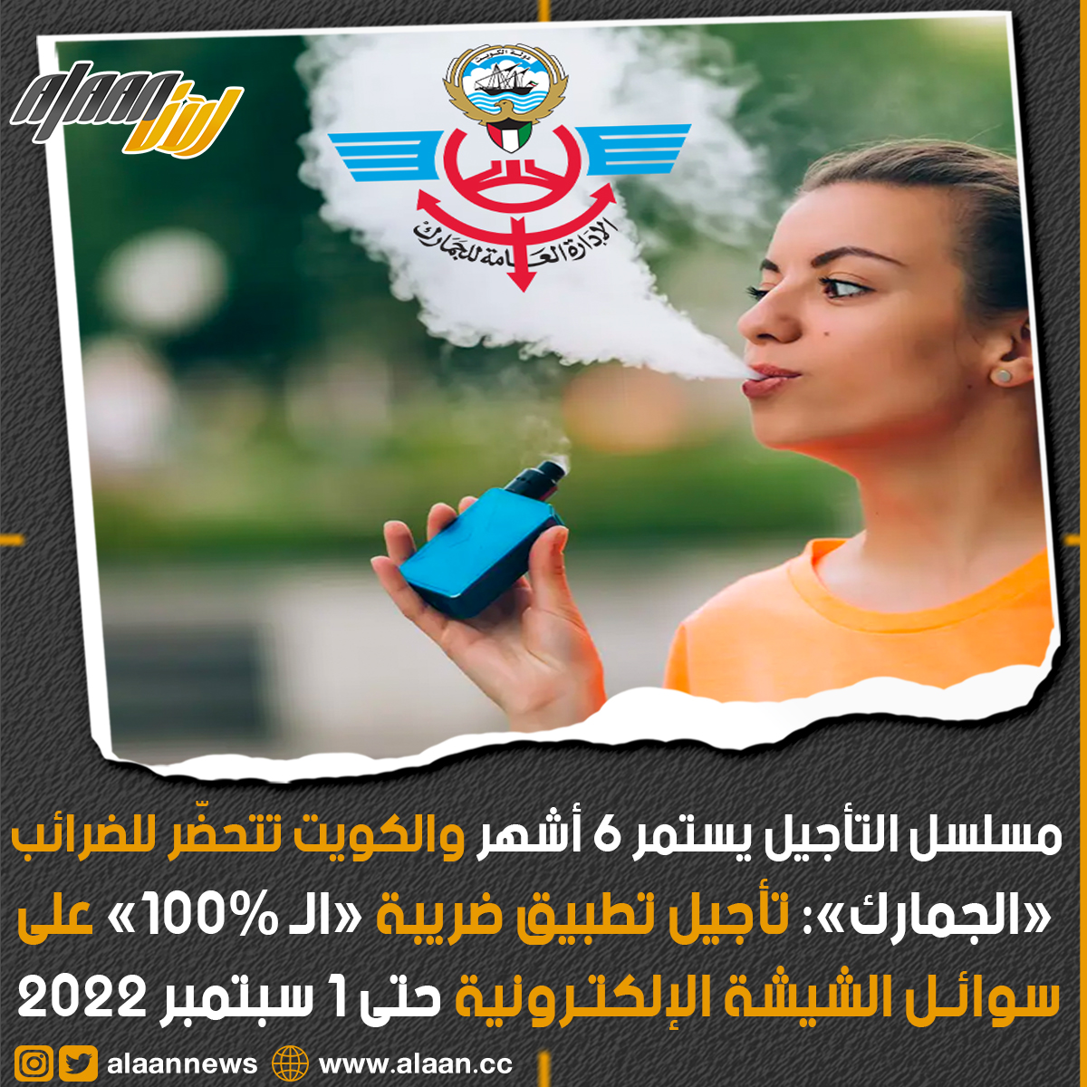 «الجمارك»: تأجيل تطبيق الضريبة «100%» على سوائل #الشيشية_الإلكترونية حتى أول #سبتمبر المقبل بدلاً من أول #مارس