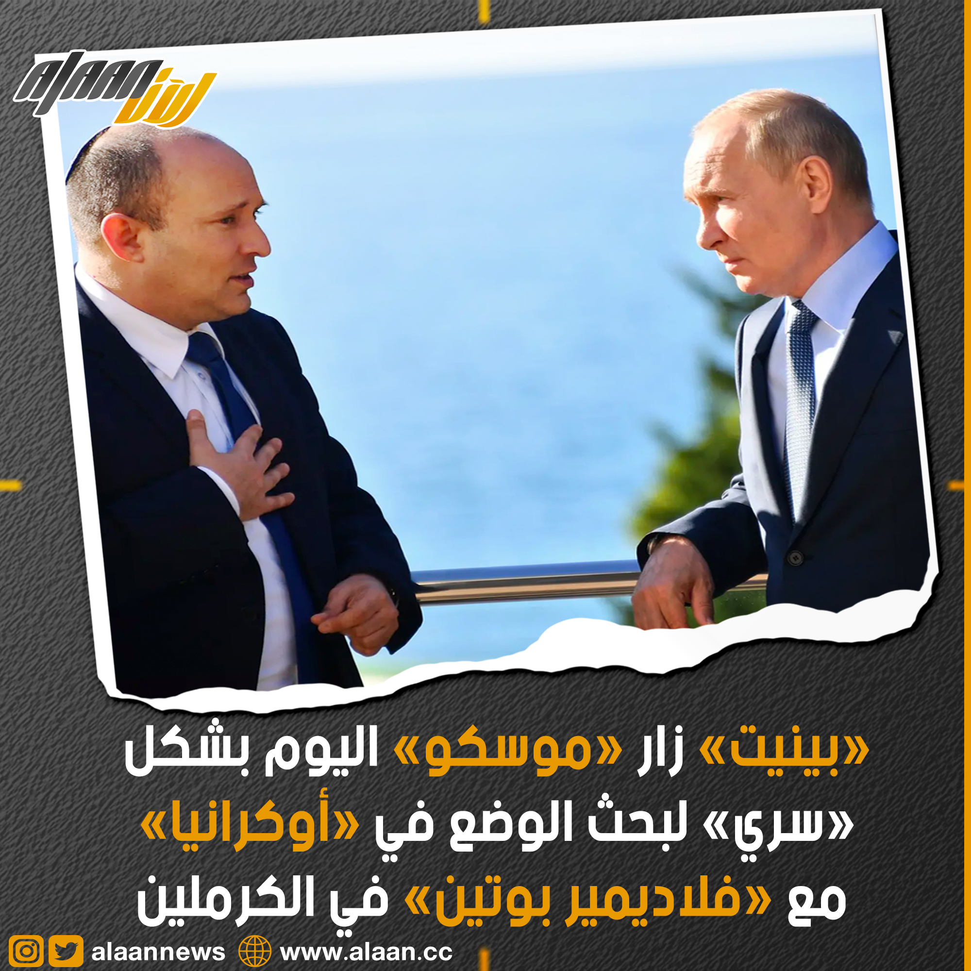 وكانت وسائل إعلام إسرائيلية أفادت بأن رئيس بينيت زار العاصمة الروسية موسكو بشكل سري اليوم السبت، لبحث العملية العسكرية الروسية في أوكرانيا.