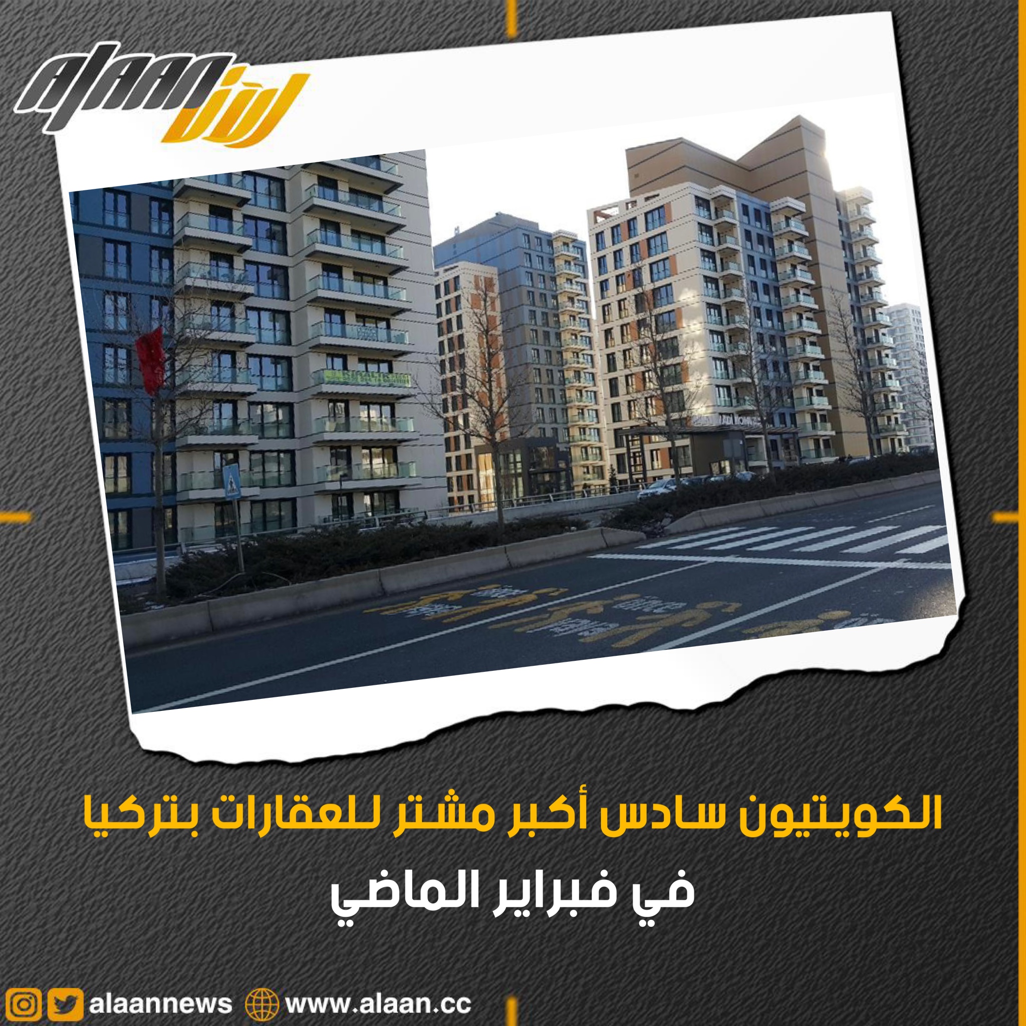 أظهرت بيانات إحصائية تركية اليوم الثلاثاء أن الكويتيين جاؤوا في المرتبة السادسة من حيث شراء الأجانب للعقارات بتركيا في فبراير الماضي.