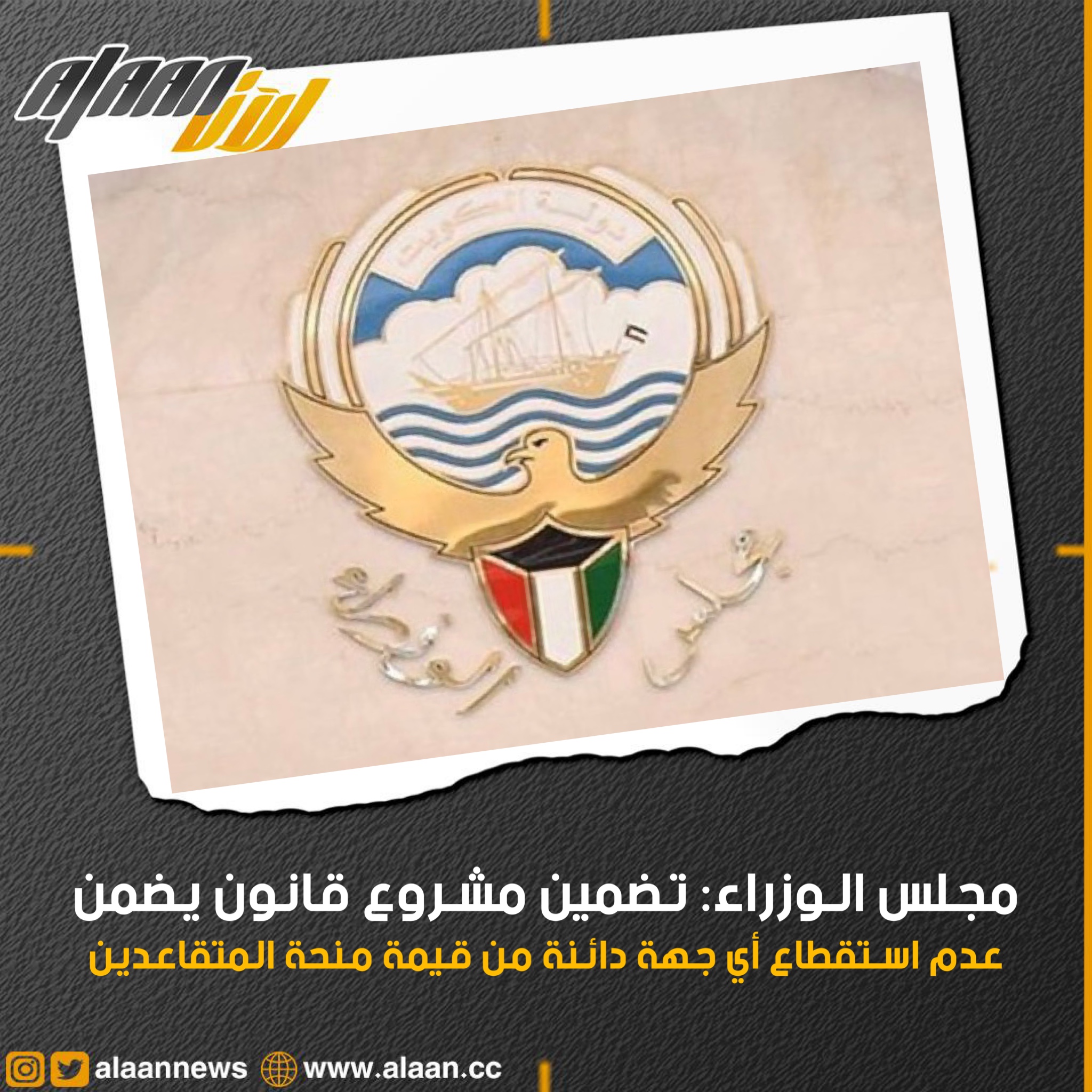 قال رئيس مركز التواصل الحكومي والناطق الرسمي باسم الحكومة طارق المزرم إن سمو الشيخ صباح الخالد الحمد الصباح رئيس مجلس الوزراء وجه إدارة الفتوى والتشريع والمؤسسة العامة للتأمينات الاجتماعية إلى تضمين مشروع القانون الخاص بصرف المنحة المالية للمتقاعدين نصا يضمن عدم استقطاع أي جهة دائنة من قيمة المكافأة المخصصة للمتقاعدين وأن تصرف كاملة لمستحقيها.