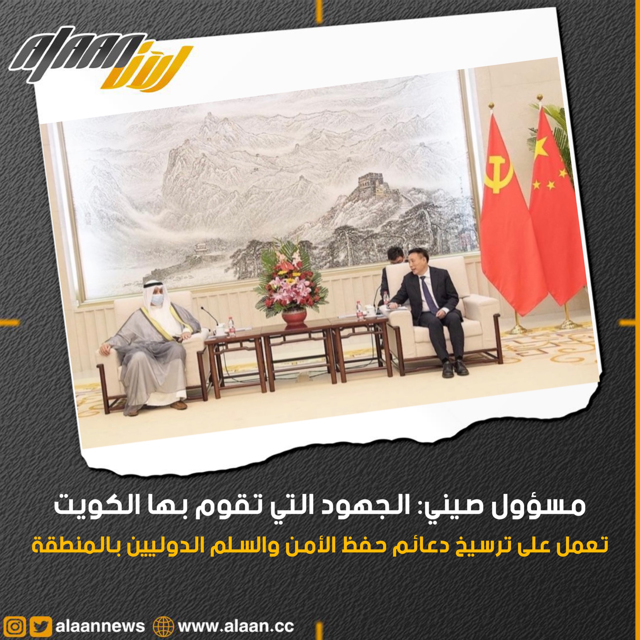 ونقل البيان عن المسؤول الصيني تأكيده استراتيجية العلاقات الثنائية التي تربط الصين بالكويت وضرورة تعزيزها في المجالات كافة.