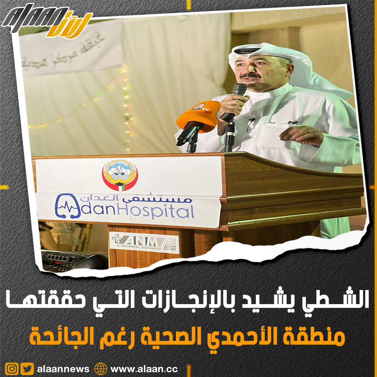 أشاد مدير منطقة الاحمدي الصحية الدكتور احمد الشطي اليوم الاحد بالانجازات التي حققتها مستشفيات ومراكز المنطقة بالرغم من الظروف الصعبة المرتبطة بجائحة (كورونا).