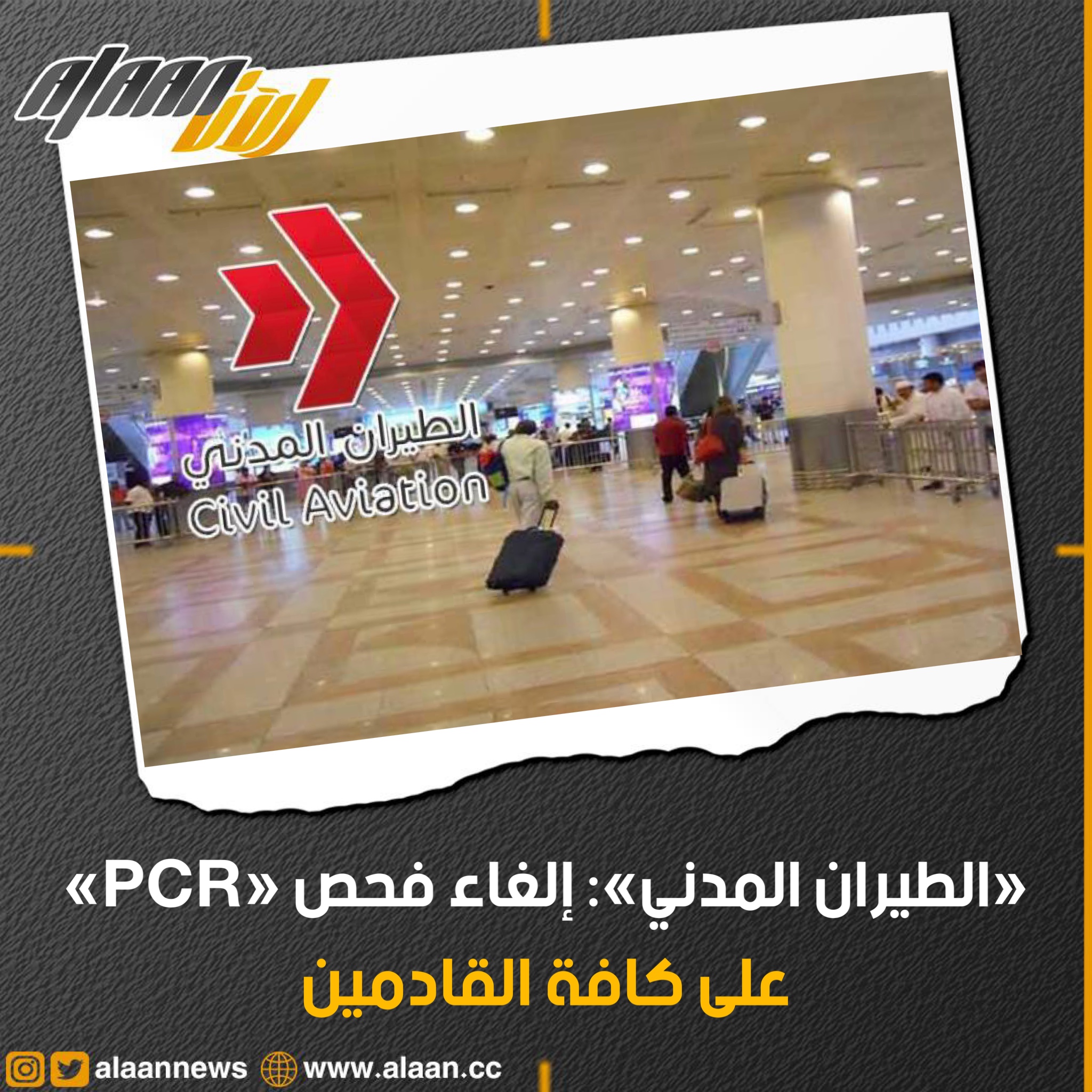 أصدرت الإدارة العامة الطيران المدني قرارا بإلغاء شرط فحص الـ PCR على كافة القادمين من الخارج بغض النظر عن حالة التحصين.