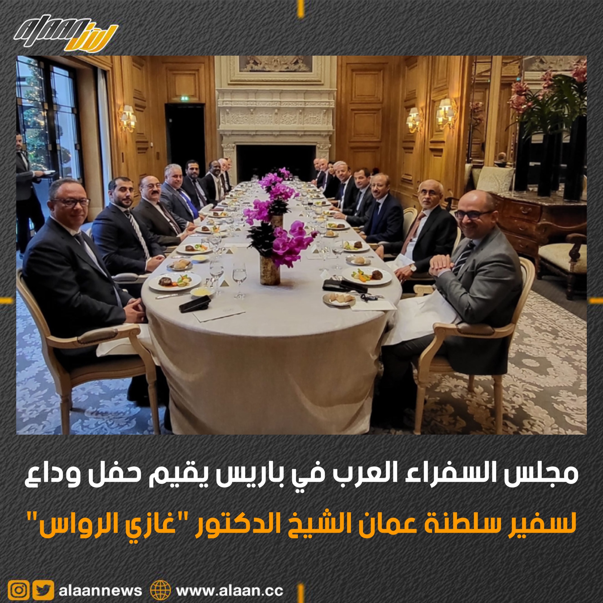 أقام مجلس السفراء العرب في باريس، اليوم الأربعاء، حفل وداع بمناسبة انتهاء عمل سفير سلطنة عمان في باريس الشيخ الدكتور غازي بن سعيد البحر الرواس.
