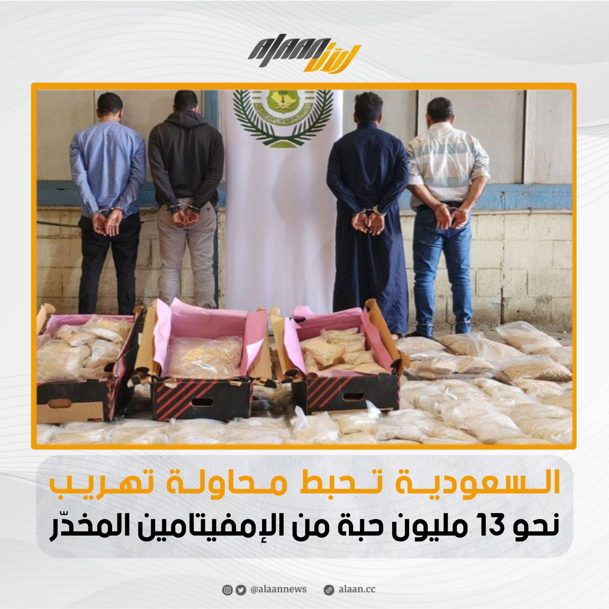 أعلنت السعودية الثلاثاء إحباط محاولة تهريب نحو 13 مليون حبة من مادة الإمفيتامين المخدّر مخبأة في شحنة رمّان عبر ميناء جدّة، والقبض على أربعة أشخاص على ارتباط بالعملية، في وقت تكافح السلطات محاولات تهريب هذا المخدر وتوزيعه منذ سنوات في المملكة.