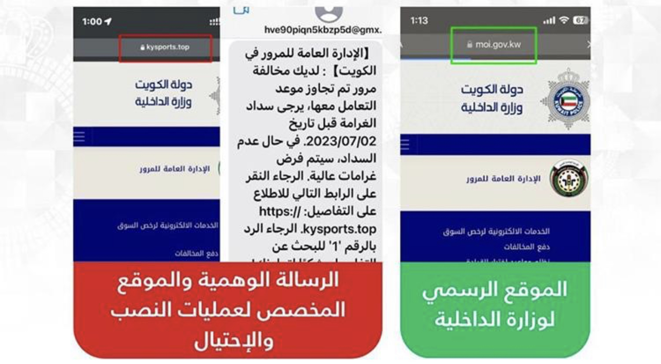 أمن وقضايايتم من خلال الرسائل إيهام الأشخاص بفرض غرامات مالية عليهم لعدم تسديد المخالفات المرورية