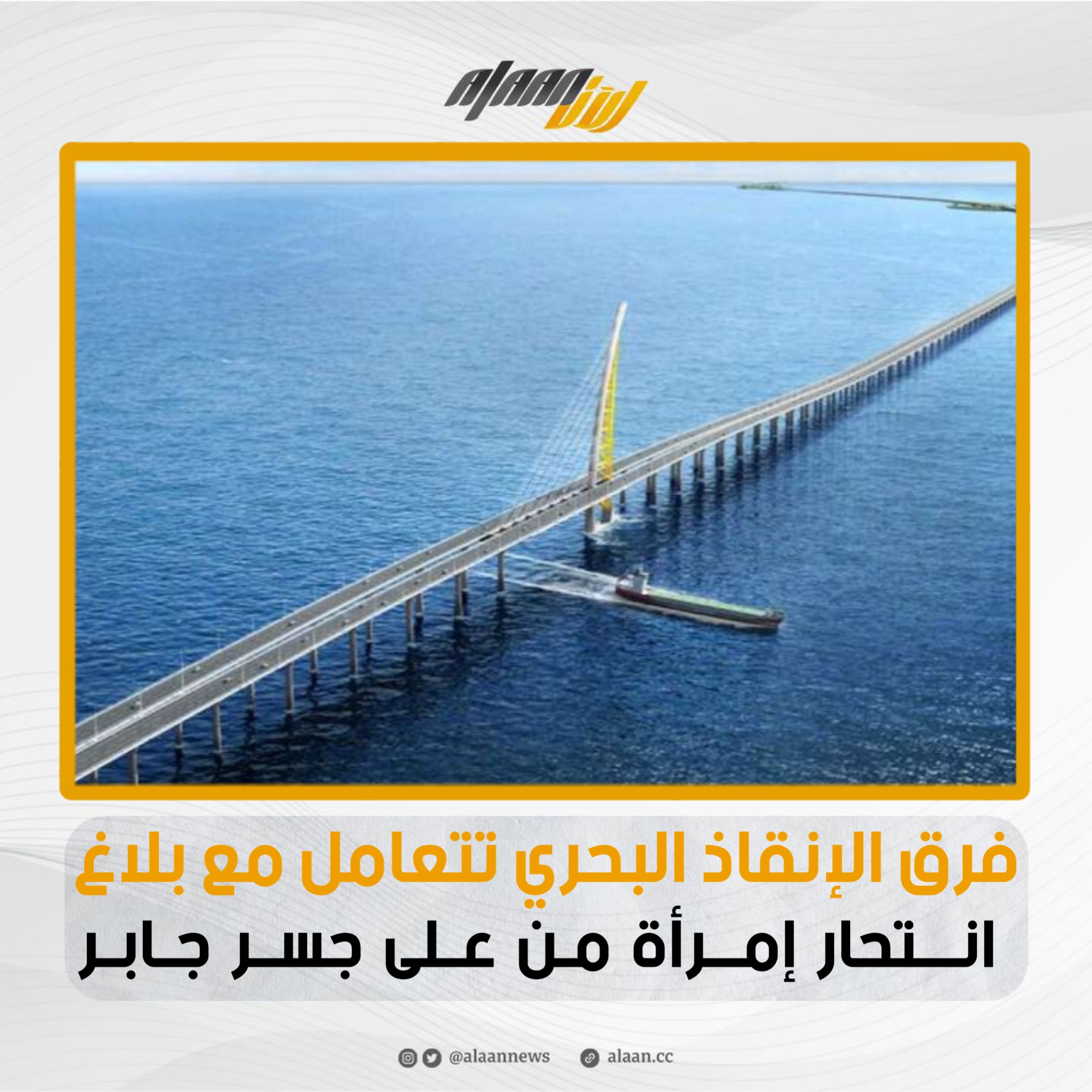 أعلنت الإدارة العامة للإطفاء أن فرق الإطفاء والإنقاذ البحري تتعامل مع بلاغ يفيد بانتحار امرأة من على جسر جابر.