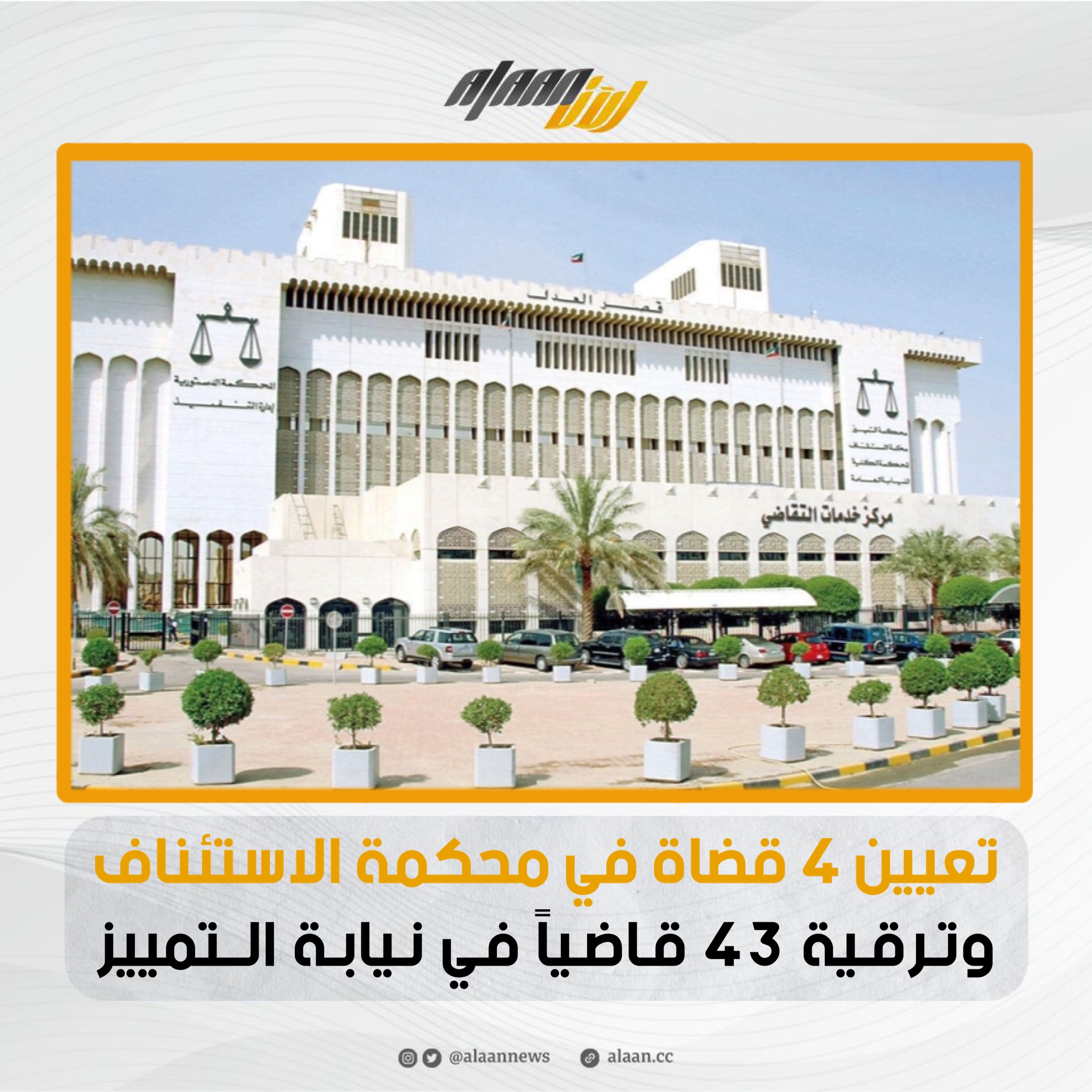 تعيين 4 قضاة في محكمة الاستئناف وترقية 43 قاضيًا في نيابة التمييز والنيابة العامة والمحكمة الكلية