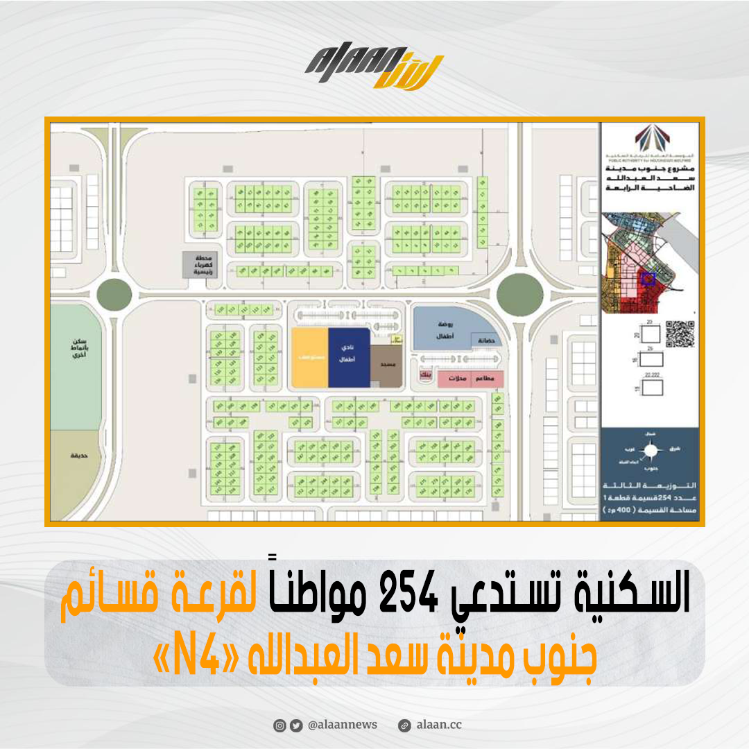 السكنية تستدعي 254 مواطناً لقرعة قسائم جنوب مدينة سعد العبدالله «N4»