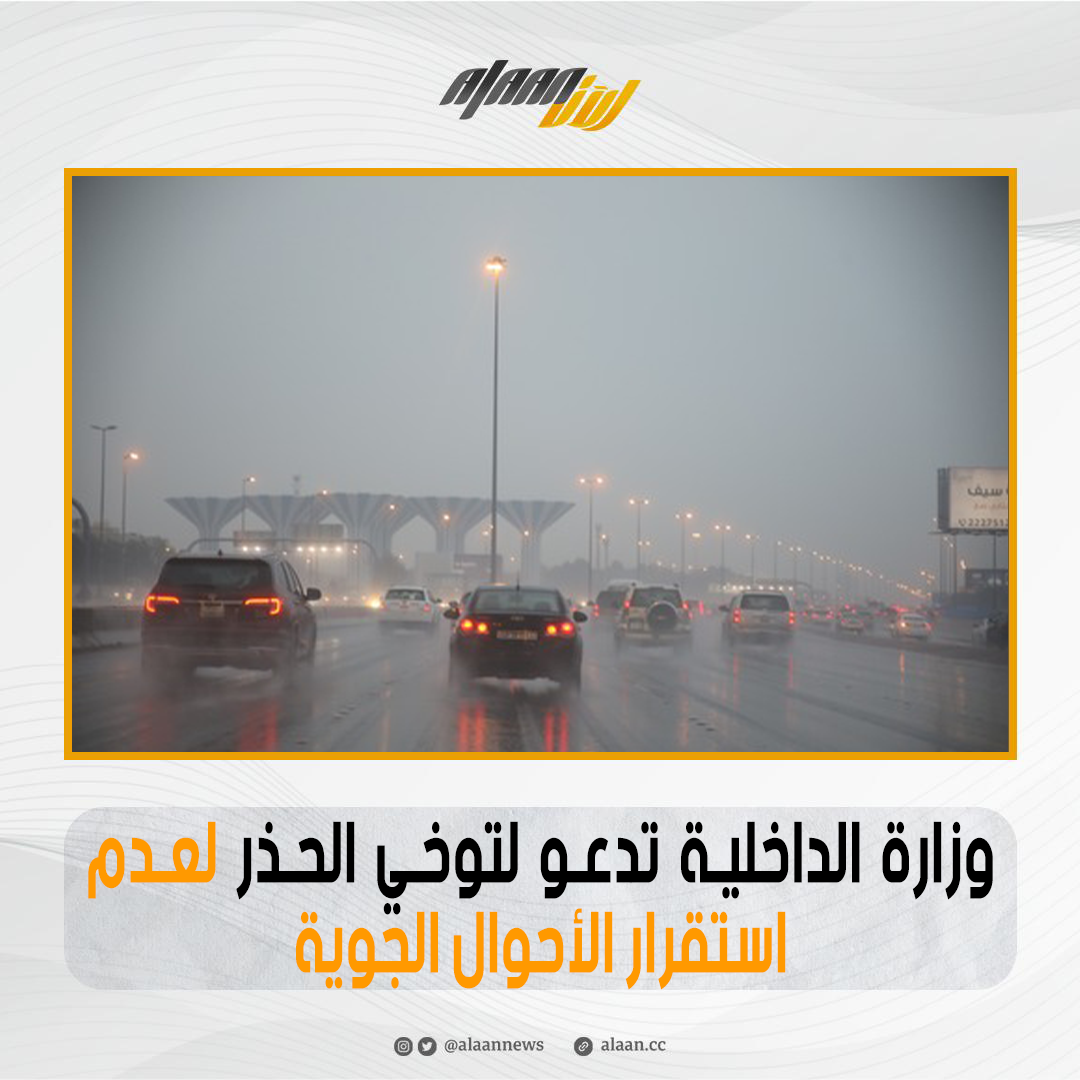 دعت وزارة الداخلية لتوخي الحيطة والحذر نظرا لعدم استقرار الأحوال الجوية التي تشهدها البلاد.