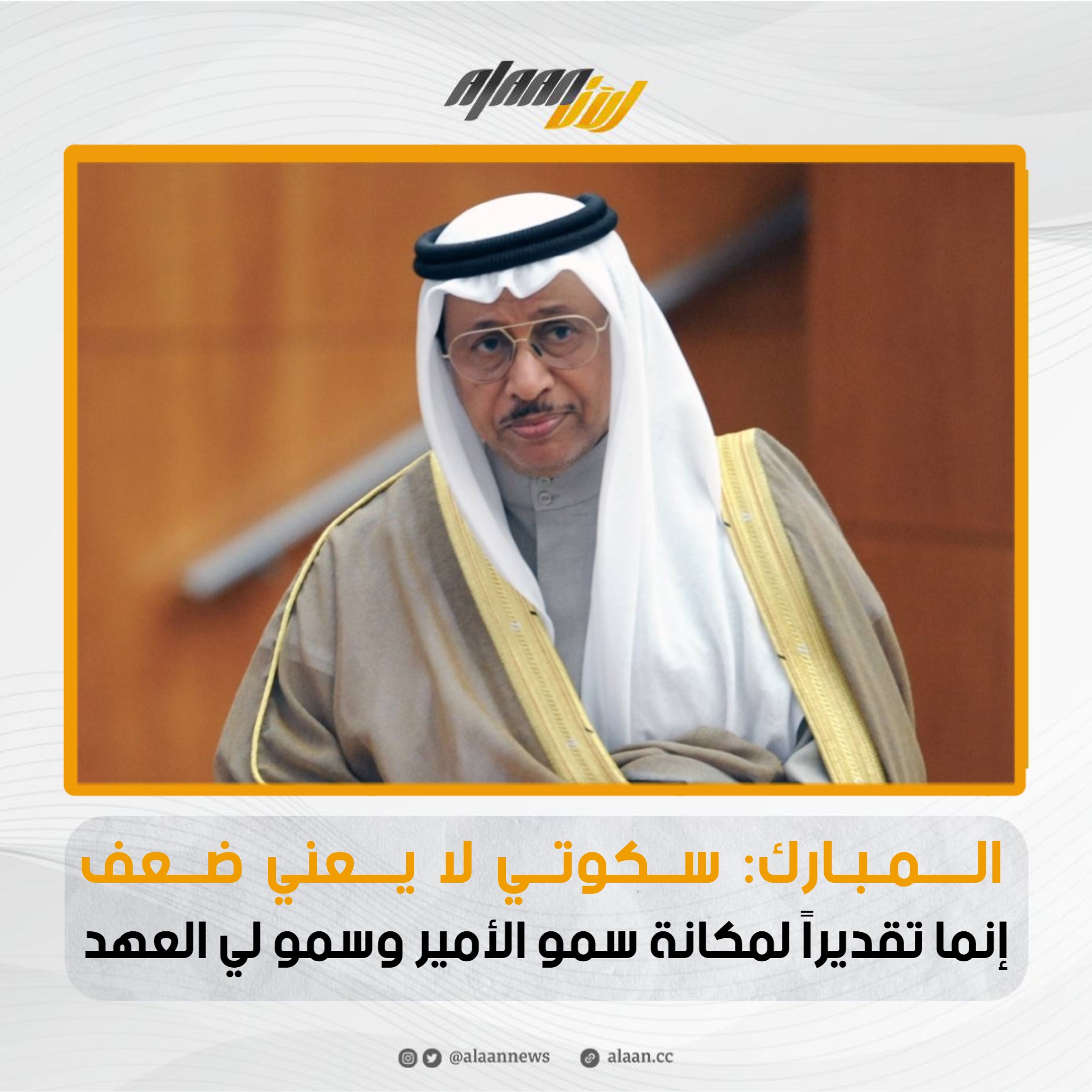 المبارك: سكوتي لا يعني ضعف إنما تقديراً لمكانة سمو الأمير وسمو لي العهد