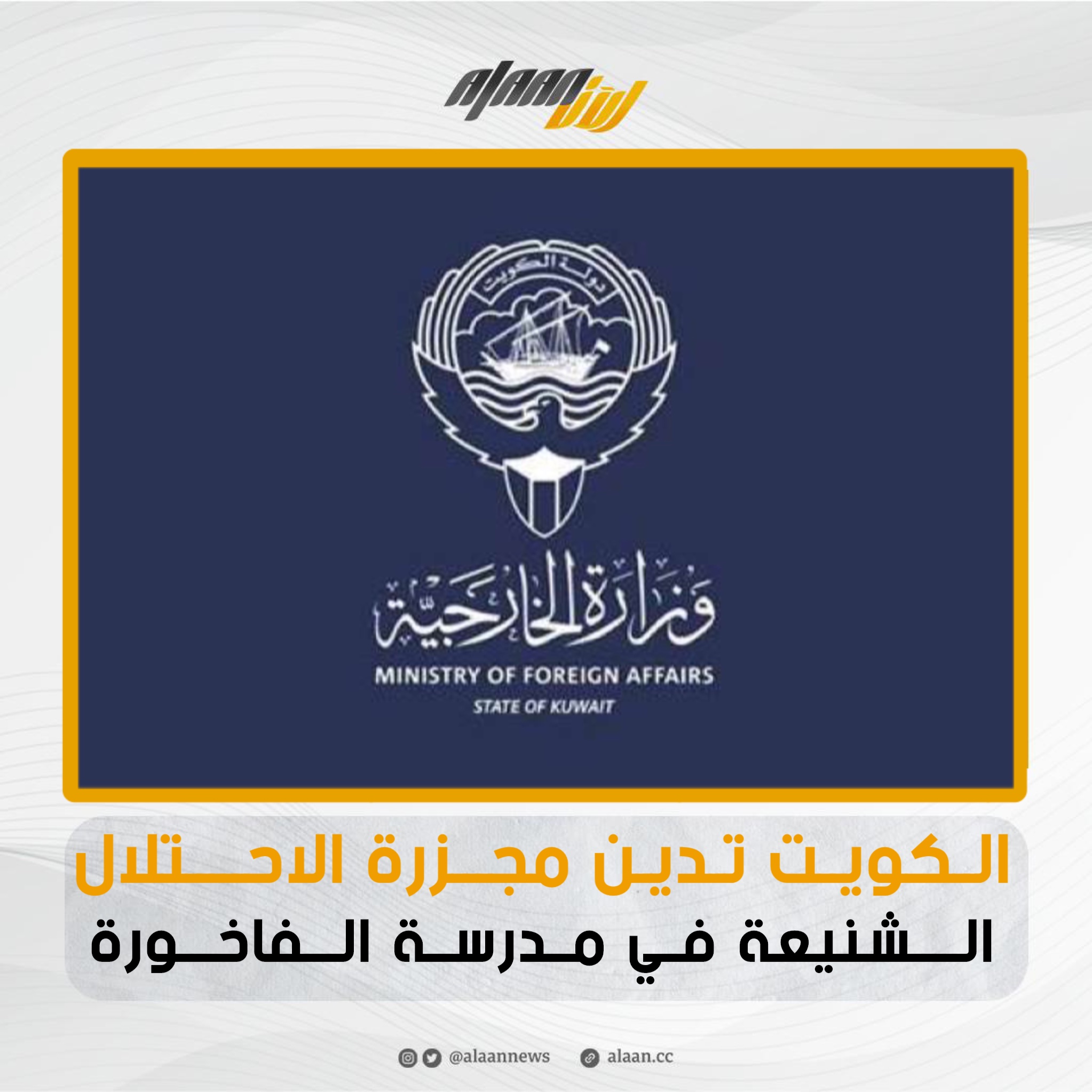 أعربت وزارة الخارجية عن إدانة واستنكار دولة الكويت للمجزرة الشنيعة التي ارتكبتها قوات الاحتلال الإسرائيلية في مدرسة الفاخورة التابعة لوكالة الأمم المتحدة لإغاثة وتشغيل لاجئي فلسطين في الشرق الأدنى (أونروا) والواقِعة بمخيم جباليا في شمال قطاع غزة، والتي أدت إلى سقوط عدد من الضحايا المدنيين من بينهم نساء وأطفال.