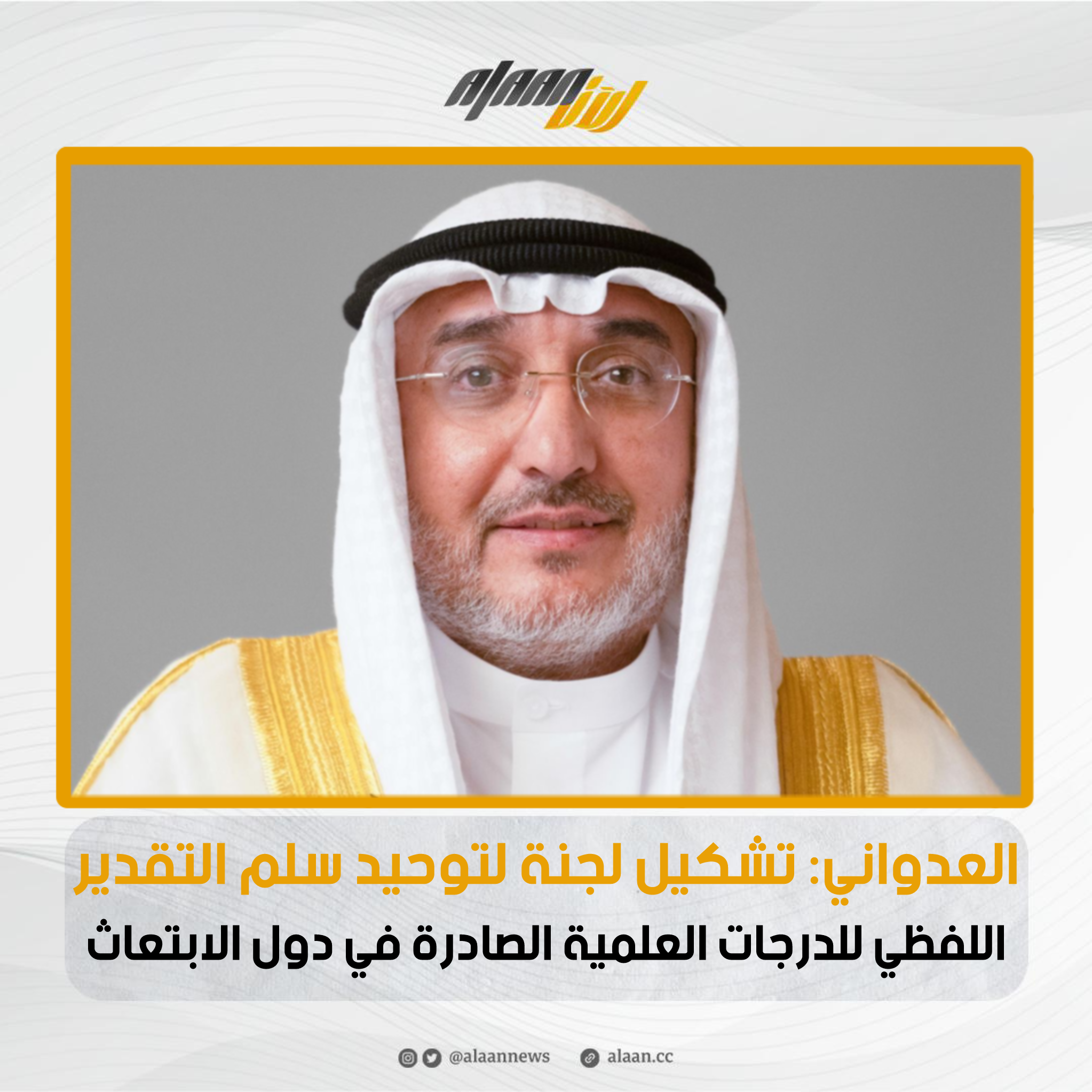 أصدر وزير التربية ووزير التعليم العالي والبحث العلمي د. عادل العدواني قرارا وزاريا بشأن تشكيل لجنة لتوحيد سلم التقدير اللفظي والمعدل العلمي لجميع الدرجات العلمية الصادرة في دول الابتعاث الأوربية.