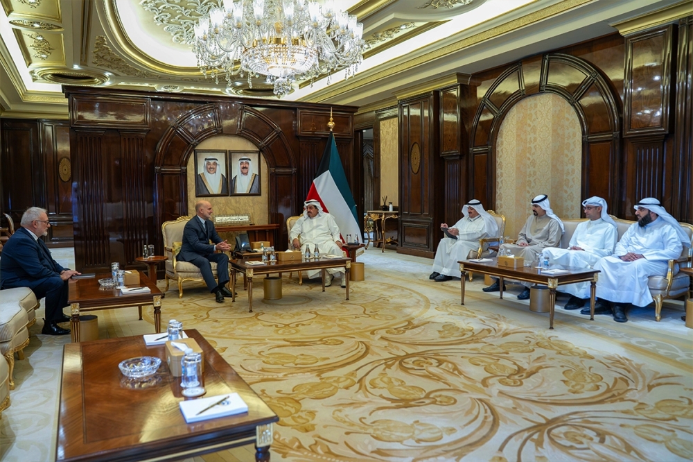 استقبل سمو الشيخ أحمد عبدالله الأحمد الصباح رئيس مجلس الوزراء في قصر بيان اليوم الرئيس التنفيذي لمستشفى غوستاف روسي البروفيسور فابريس بارليسي والمستشار الدولي للرئيس التنفيذي للمستشفى ريمي تيوليت بمناسبة زيارتهما للبلاد وذلك بحضور وزير الصحة د.أحمد العوضي.