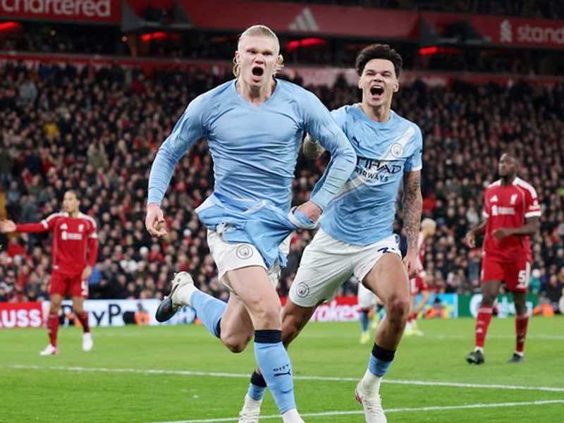 وتقدم ليفربول بهدف رائع لنجمه دومينيك سوبوسلاي في الدقيقة 74 قبل ان يتعادل برناردو سيلفا للسيتي في الدقيقة 84، ثم يدرك ايرلنغ هالاند هدف الفوز من ركلة جزاء في الدقيقة 93 من الوقت بدل الضائع الذي شهد اشهار البطاقة الحمراء لسوبوسلاي بعد اعاقته لهالاند المنفرد بالمرمى، في الدقيقة 98 لينتهي بعد ذلك اللقاء بفوز صعب للسيتي.