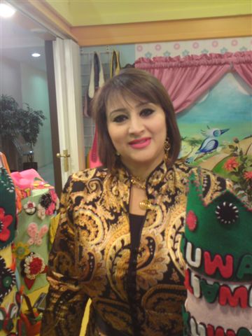 - المصممة هنادي حاجي في معرضها وبجانبها بعض 'الفناتك'