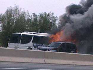 اندلع حريق في باص لنقل العمال في منطقة الجهراء ونجا نحو 15 عاملا كانوا بداخله حيث سارعوا بالنزول من الباص بعد اشتعال النيران في الماكينة، وتبين بأن تماسا كهربائيا وراء الحريق، حيث شوهدت سحب دخانية كثيفة في موقع الحريق.