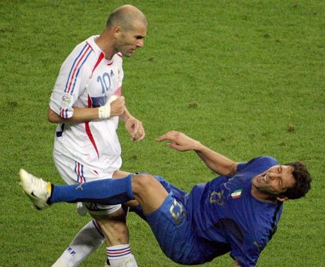 وكان زيدان وجه ضربة شهيرة بالرأس إلى ماتيراتزي بعد أن تلفظ الأخير بشتائم طاولت والدة الأول وشقيقته في نهائي مونديال 2006 في ألمانيا ، ونال البطاقة الحمراء.