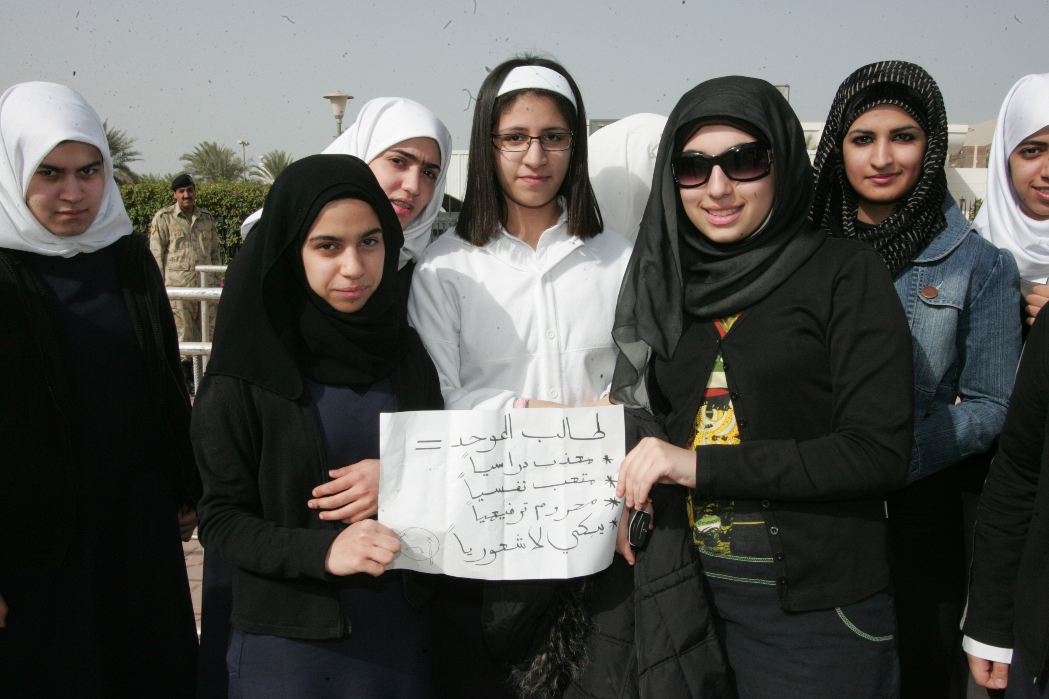 انهم فقدوا الامل في علاج مشاكلهم وسلموا اللجنة التعليمية في البرلمان نسخة من مطالبهم ، وقال الطلبة انهم يتعرضون لضغوط رهيبة دفعت بزميلة لهم الى الانتحار في مدرسة بيبي السالم بسبب ضغوط الدراسة. وقال الطللبة ان ابرز مشاكلهم طول فترة الامتحانات وضيق الوقت المخصص لتقديم الاختبار فضلا عن التكاليف المالية بسبب كثرة المشاريع التعليمية التي تزيد عن 14 مشروعا ونشاطا في العام.وطالب المعتصمونباطالة فترة الاجازة التي تسبق الامتحانات وتقليص المناهج.