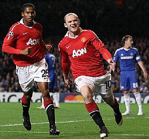 قاد النجم الدولي واين روني فريقه مانشستر يونايتد الإنجليزي للفوز على مواطنه تشيلسي في عقر داره بهدف نظيف اليوم الأربعاء في ختام ذهاب دور الثمانية لبطولة دوري أبطال أوروبا لكرة القدم.