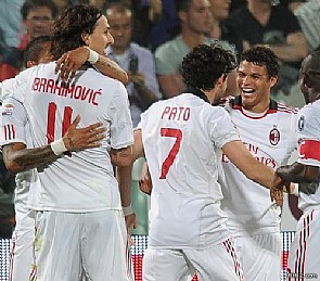 وضرب الميلان الذي استعاد خدمات مهاجمه السويدي زلاتان ابراهيموفيتش بعد انتهاء ايقافه لمباراتين لكنه لم ينعم بذلك كثيرا لانه طرد في اواخر المباراة ، بقوة منذ صافرة البداية وافتتح التسجيل في الدقيقة 8 عبر الهولندي المخضرم كلارنس سيدورف الذي وصلته الكرة عند حدود المنطقة بعد تمريرة رأسية من البرازيلي الكسندر باتو فاطلقها لاعب الوسط المخضرم صاروخية في شباك اصحاب الارض.