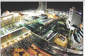 احيا 180 الف مصل ليلة السابع والعشرين من رمضان في مسجد الدولة الكبير ملتمسين ليلة القدر في مشهد ايماني مهيب حيث امتلأت الشوارع والساحات المحيطة بالمسجد بجموع المتهجدين المتضرعين الى الله املا بالرحمة والمغفرة والعتق من النار. (6 -7)