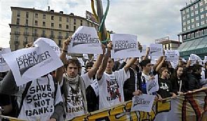 وتمكن الطلاب من اقتحام ردهة مبنى جولدمان ساكس في قلب حي المال في ميلانو. وامكن تفريق الاحتجاجات بسرعة ولكن عبارات كتبها المحتجون باللون الاحمر على الجدران اعربت عن غضبهم من رئيس الوزراء سيلفيو برلسكوني وقالت احداها 'اعطنا مالا.'