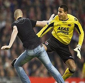 وكان المشجع قد اقتحم أرض الملعب في الدقيقة 37 من المباراة التي أقيمت في أمستردام، واعتدى على الكوستاريكي إستيبان ألفارادو حارس مرمى ألكمار قبل أن يسقط المشجع أرضا ويركله الحارس مرتين.