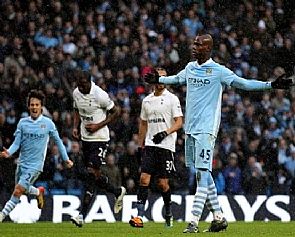 وكانت المباراة متجهة الى التعادل بعد ان سجلت الاهداف الاربعة الاولى في غضون 9 دقائق فقط في الشوط الثاني، حيث تقدم سيتي بهدفين نظيفين قبل ان يعود توتنهام ويدرك التعادل، لكن بالوتيللي الذي دخل بديلا في الدقائق الاخيرة، تقمص دور 'الشرير' ثم 'البطل' في غضون دقائق معدودة ونجح في خطف هدف الفوز لفريقه من ركلة جزاء في الوقت بدل الضائع.